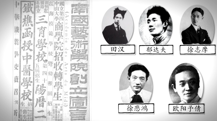 从当时的报纸上可以看到,南国虽然规模不大,但是文学、绘画和戏剧三科均由当时响当当的人物担纲:田汉主持文学科,郁达夫、徐志摩均为聘请的教授,绘画科由徐悲鸿主持,欧阳予倩负责戏剧科。