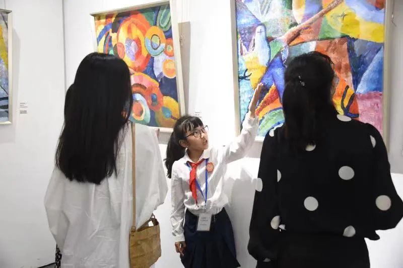 担任讲解员的邹佳涵同学表示,学校有了自己的美术馆后,不出校门就可以和艺术对话,在锻炼自己表达能力的同时,也加深了对艺术的热爱。