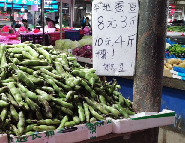 记者在宝山一家菜市场发现,不少摊位前的蚕豆价格已降至为8元3斤、10元4斤,摊主们正在手剥新鲜的豆瓣。住在附近小区的蔡先生最近每天都要来到菜场带一点蚕豆回去。