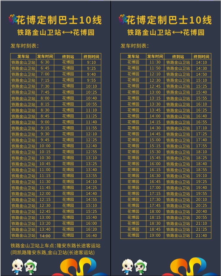 花博定制巴士10线发车时刻表