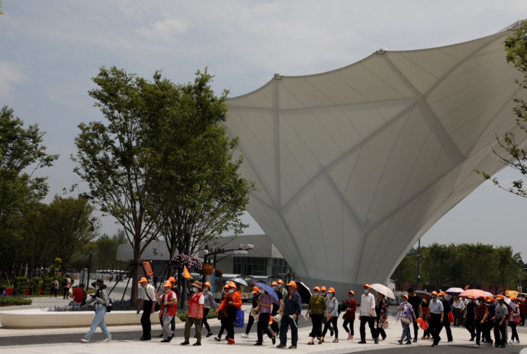 在到达花博园北p1停车场后,定制巴士10线停在公交集运中心最外侧站点,离花博园北主园区步行需10分钟左右。那里问询服务、医疗救助、洗手间和园区介绍栏等服务设施齐全,经安全和防疫检查后,就能看到“圆圆”“梦梦” 迎接大家的笑脸啦!