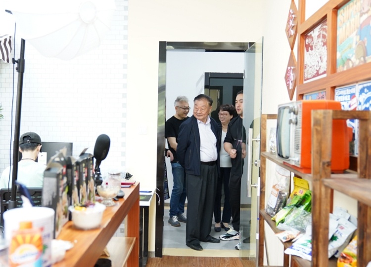 5月28日-6月3日,上海市委宣传部将联合市文旅局、市商务委开展“爱上海 品生活”为主题的“品质生活直播周”活动。为推动“直播周”期间的深度合作, 5月19日,上海市原副市长、市人大常委会副主任、党组副书记、市老字号协会名誉会长周慕尧,嘉定区委常委、宣传部部长顾惠文,市委宣传部发改办副主任吉海东,上海市老字号协会秘书长邵玉玲等领导,来到位于安亭的上海国际短视频中心考察调研。