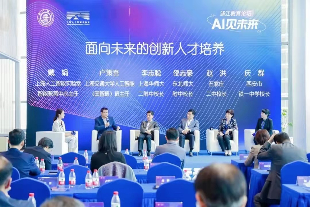 上海交通大学人工智能(国智班)班主任卢策吾教授、上海华师大二附中校长李志聪、东北师大附中校长邵志豪、石家庄二中校长赵洪、西安市铁一中学校长庆群开展《面向未来的创新人才培养》圆桌论坛。