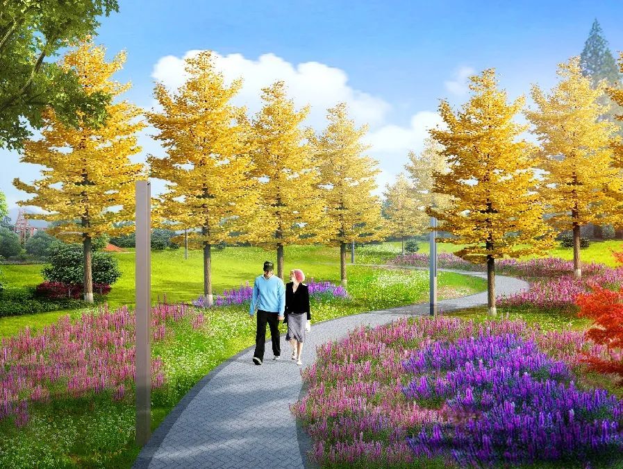 徐汇“环城公园带”为中心城周边提供了高品质绿色生态空间,同时结合周边自然条件、地域文化等要素,增加植被的季相色彩变化,更换色叶行道树,形成秋色景观大道,为市民提升游玩休憩的公共活动空间。