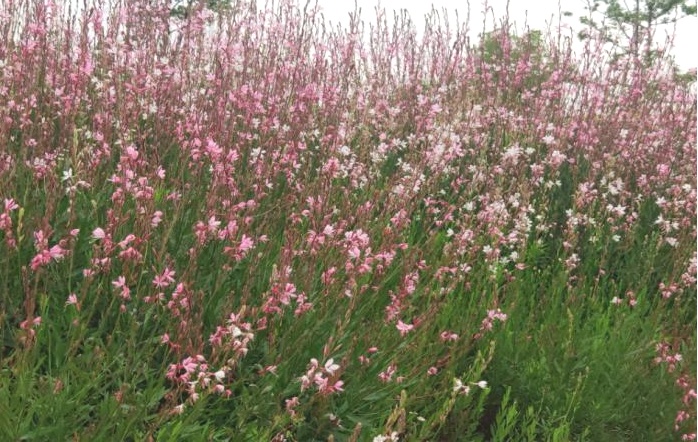 山桃草为多年生宿根草本,花色白中带粉色,株高60-100cm,宜生长在阳光充足的地方,花期5-8月。