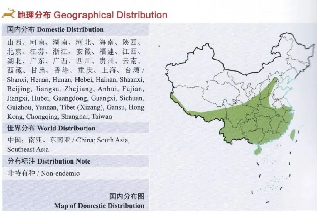果子狸地理分布(图片来源于《中国生物多样性红色名录》)