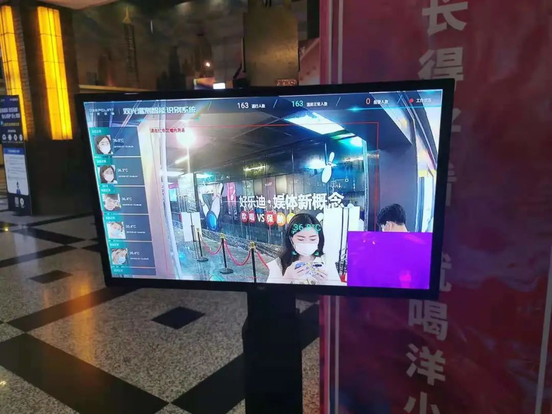 就在海报旁边,是影院防疫的第一道关卡,也是电影节展映对影院的第一个考验。记者在现场看到,从电梯出口到影院入口已经被围栏分隔为了出入两个区域,所有走进影城的观众都需要佩戴口罩、扫描健康码,入口处一张长桌上摆放着备用口罩、消毒液等防疫用品。长桌旁立着一台测温仪,行人经过时,仪器会实时跳出体温测量结果。