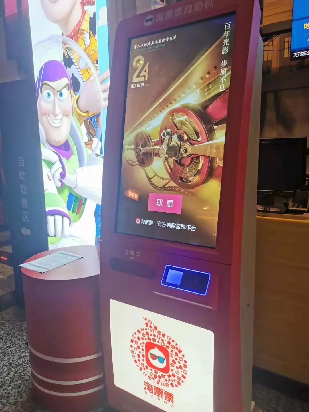 在取票区,一台专属于电影节观众的淘票票取票机已经在静候影迷的到来。严家顺告诉记者,这是影院为电影节新增设的一台取票机,与常规场次观影的观众互不影响,也可有效分流。