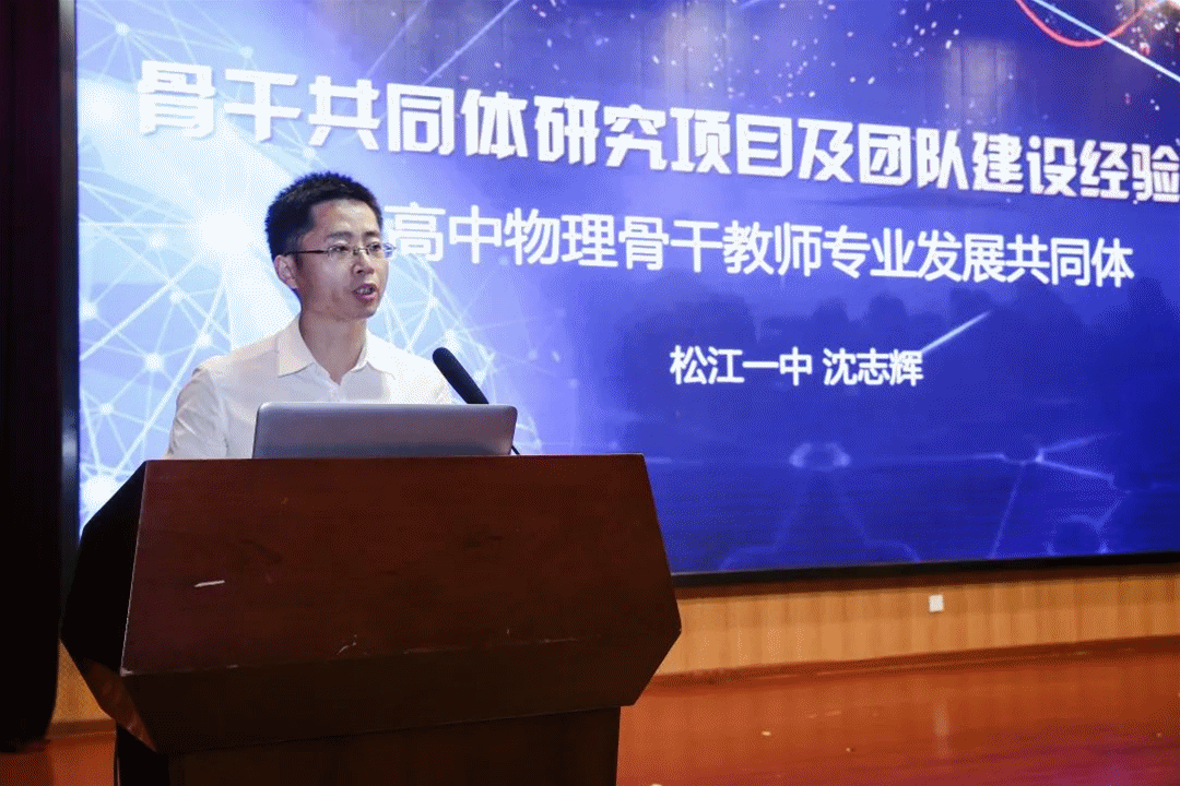 高中物理共同体主持人沈志辉和中小学劳技共同体主持人许建华分别以“合力发展 蓄势跃迁”和“做中学 学中思 思中行”为题,进行了团队项目研究及团队建设经验汇报。