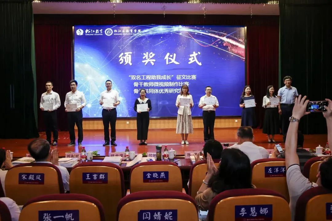 会上,对区骨干教师学科专业发展共同体终期阶段举行的多项比赛获奖教师和团队进行了表彰和颁奖,包括“双名工程助我成长”征文比赛、骨干教师微视频制作比赛及共同体“优秀研究项目”评审。