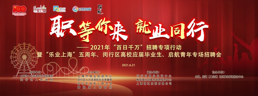 为全面贯彻落实党中央、国务院决策部署,推动就业优先政策聚力增效,上海市就业促进中心、闵行区人力资源和社会保障局将举办2021年高校应届毕业生、启航青年闵行专场招聘会,主打闵行“4+4产业”招聘,聚焦闵行区人力资源服务产业园建设,发展灵活就业新形态,稳存量扩增量提质量,着力做好高校毕业生、启航青年等青年就业工作,积极推进退役士兵、农民工、脱贫劳动力等重点人群精准帮扶,与扶贫对口地区云南保山、昭通形成共建,筑牢民生保障基础,庆祝建党百年,为擘画“十四五”蓝图开好局、起好步。