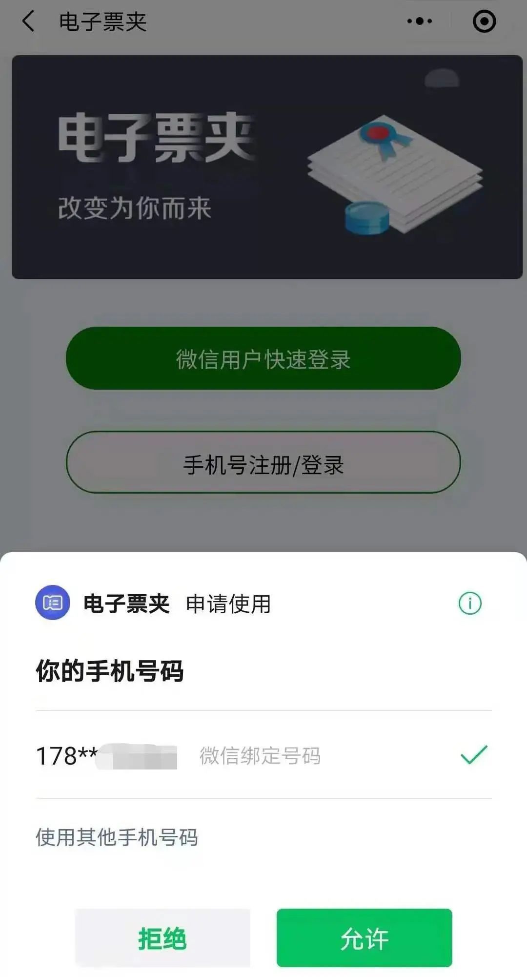 “电子票夹”小程序