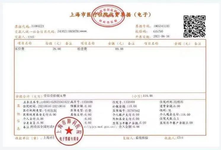 从2021年6月22日0点起,上海市肺科医院推广运用医疗收费电子票据,出院结账后即可网络领取医疗收费电子票据,同时纸质票据取消。