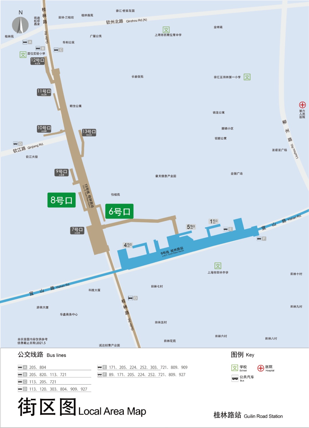 15号线桂林路站为地下三层岛式车站,开通初期启用6号和8号两个出入口。