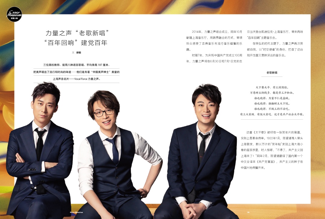 2014年,力量之声组合成立,同年10月献唱上海音乐厅,用跨界融合的方式,带领听众感受了古典音乐与流行音乐碰撞的乐趣。