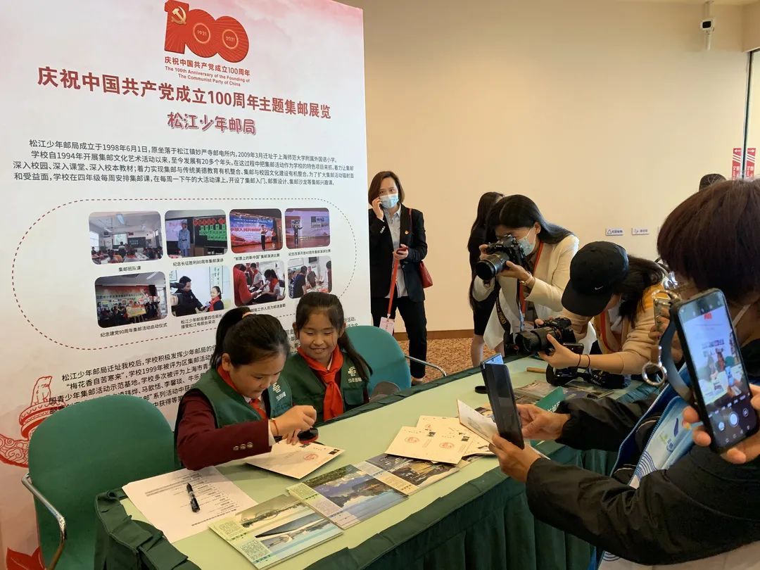 2021年4月28日,庆祝中国共产党成立100周年主题集邮展览在上海科技馆举行。上海师范大学附属外国语小学师生代表松江区少年邮局参加本次全国主题邮展盛会,这是向党百年华诞献礼的最好时机。邮展期间松江少年邮局的少先队员积极开展“邮心向党”、“邮忆党史”等丰富多彩的主题文化活动,向广大集邮爱好者宣传“百年辉煌,不忘初心”、“传承红色基因,不忘初心使命”等红色教育,极大地激发人民群众参与庆祝建党百年集邮文化活动的热情。
