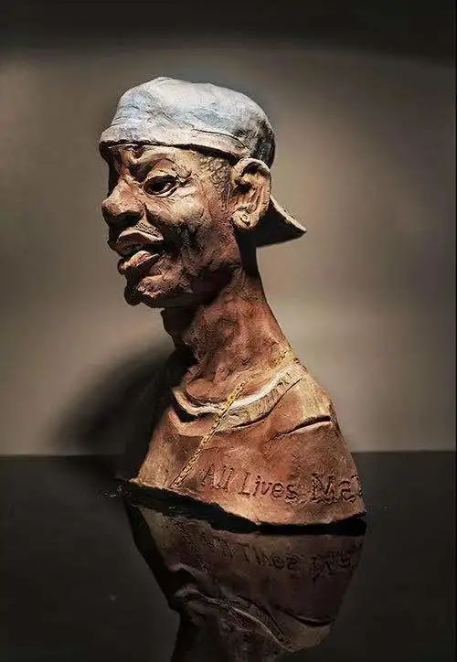 《渴望种族平等的人》是一件紫砂雕塑作品。雕塑右下角的英文字样“all lifes matter”表达了这样的意思:每条生命都值得被同等对待。作品中金链子和鸭舌帽作为黑人的元素,展现了不同种族都有属于自己的文化和历史。无论来自什么种族,都流淌着同样颜色的血液,所以都是平等的。作品之所以以紫砂作为材料,也是因为紫砂是中国传统材料,传递了文化的多元化与种族的包容与理解。
