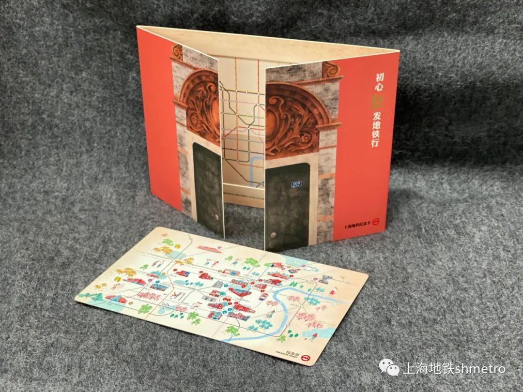 新天地站的长廊里,我们可以看到墙上展示的是上海的25个红色地标,我们的第三套《初心驶发纪念卡》的卡面,就是特别为建党百年设计的手绘地图,我们可以根据地图去这25个红色地标。
