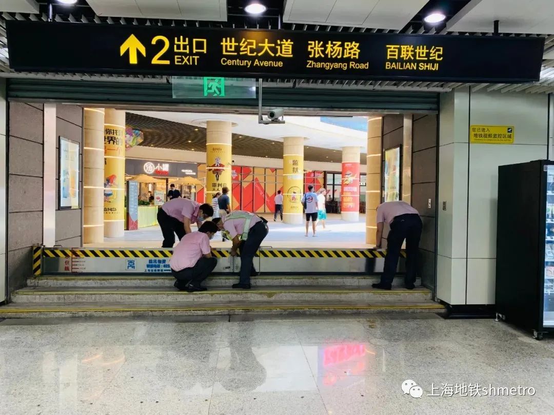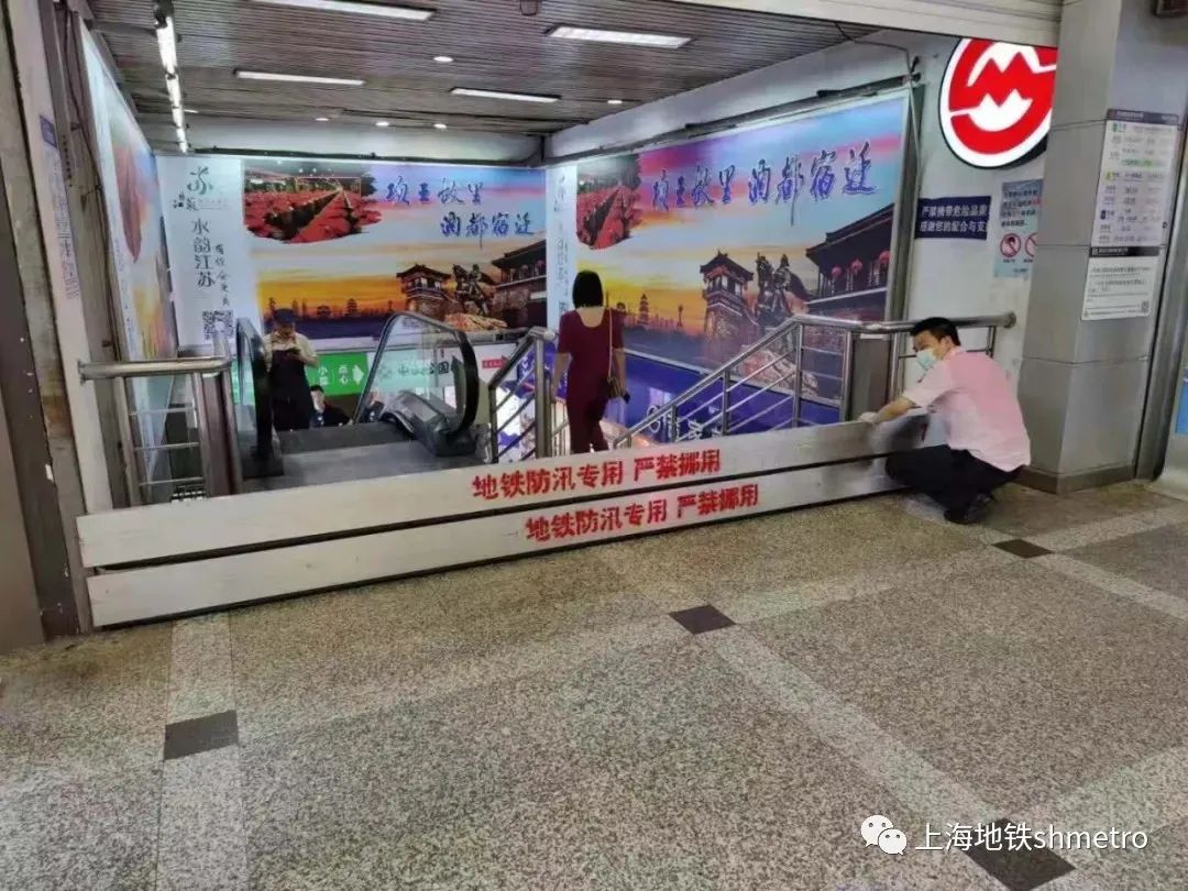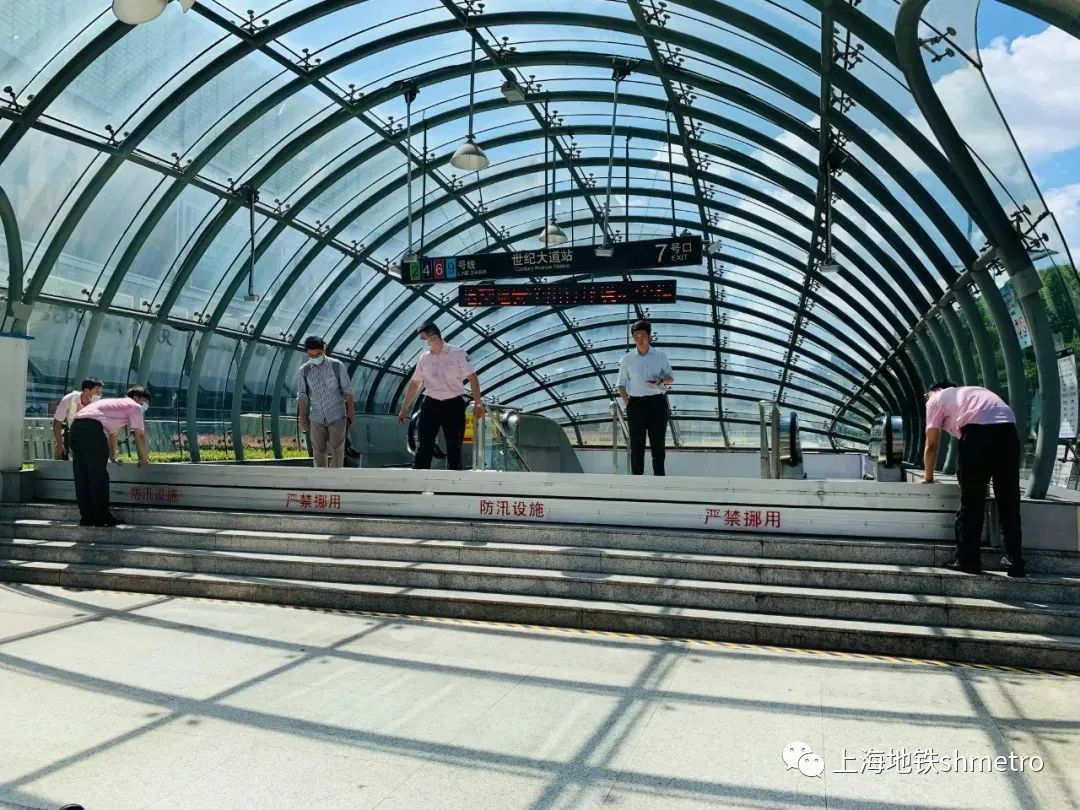 上海地铁各相关车站对防汛防台物资、设施设备做了全面检查,特别是常发性积水区段、防汛重点部位,如防汛板、出入口排水沟、地面风井等。确保相关防汛设置均运行正常。
