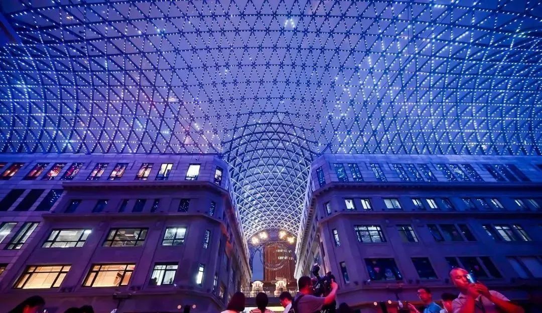 7月16日晚,位于南京东路东拓段的上海地标建筑外滩中央广场内街玻璃穹顶正式亮灯。12000盏炫彩led灯珠在近4000平方米的玻璃穹顶上交相辉映,亦梦亦幻。