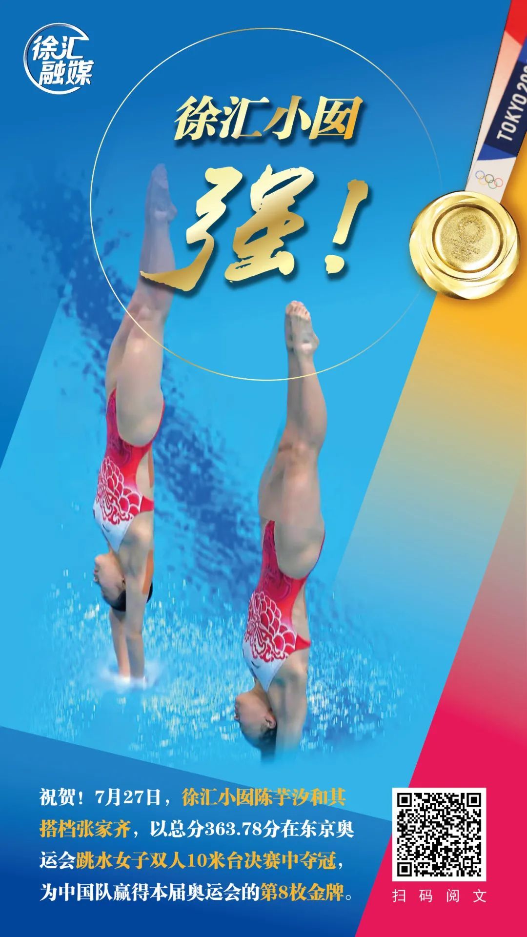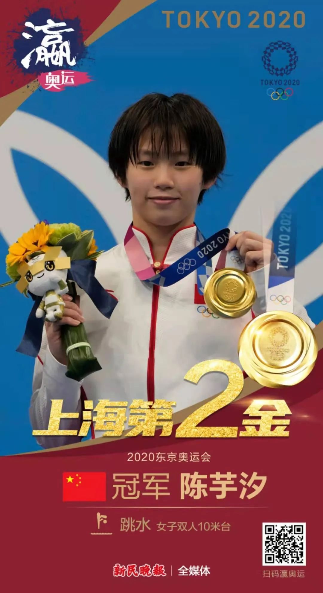 8月5日下午,陈芋汐还将参加女子单人10米跳台比赛,预祝这位上海小囡继续取得好成绩。