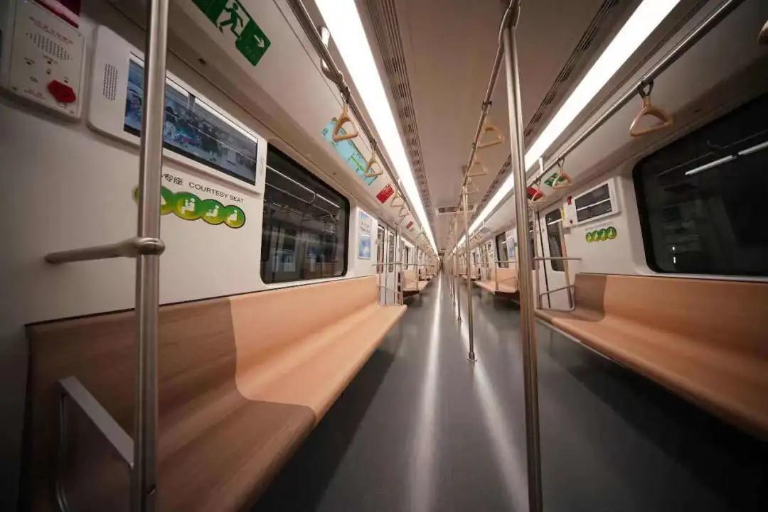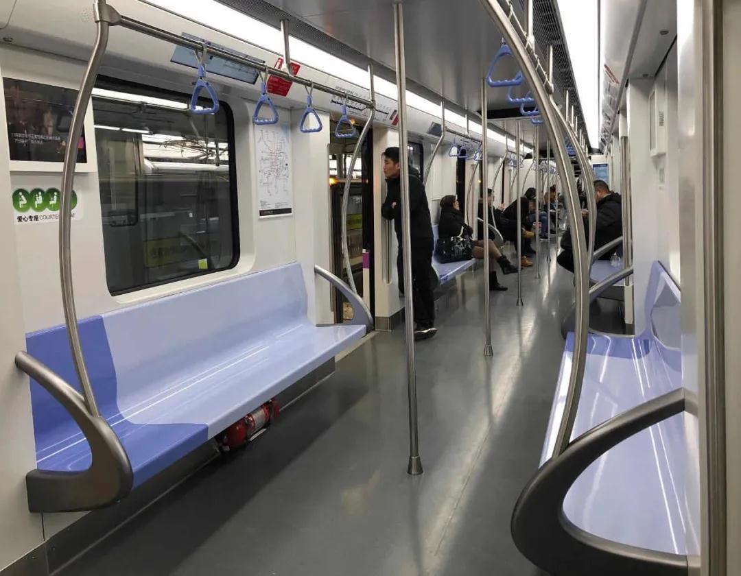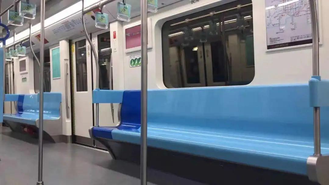 1号线新车的座椅整体颜色为天蓝色,使车厢内色调明亮舒适。
