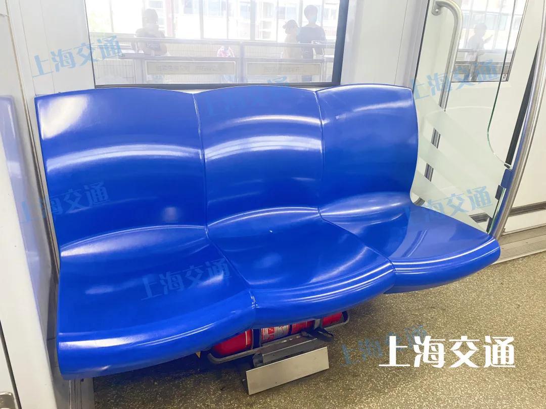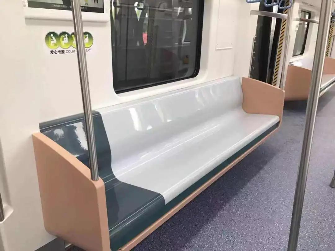 与8号线、9号线、10号线不同,11号线的车厢座椅颜色与它的外观标志色反差很大,谁能想到,以棕色为标志色的11号线,座椅颜色竟如此小清新~