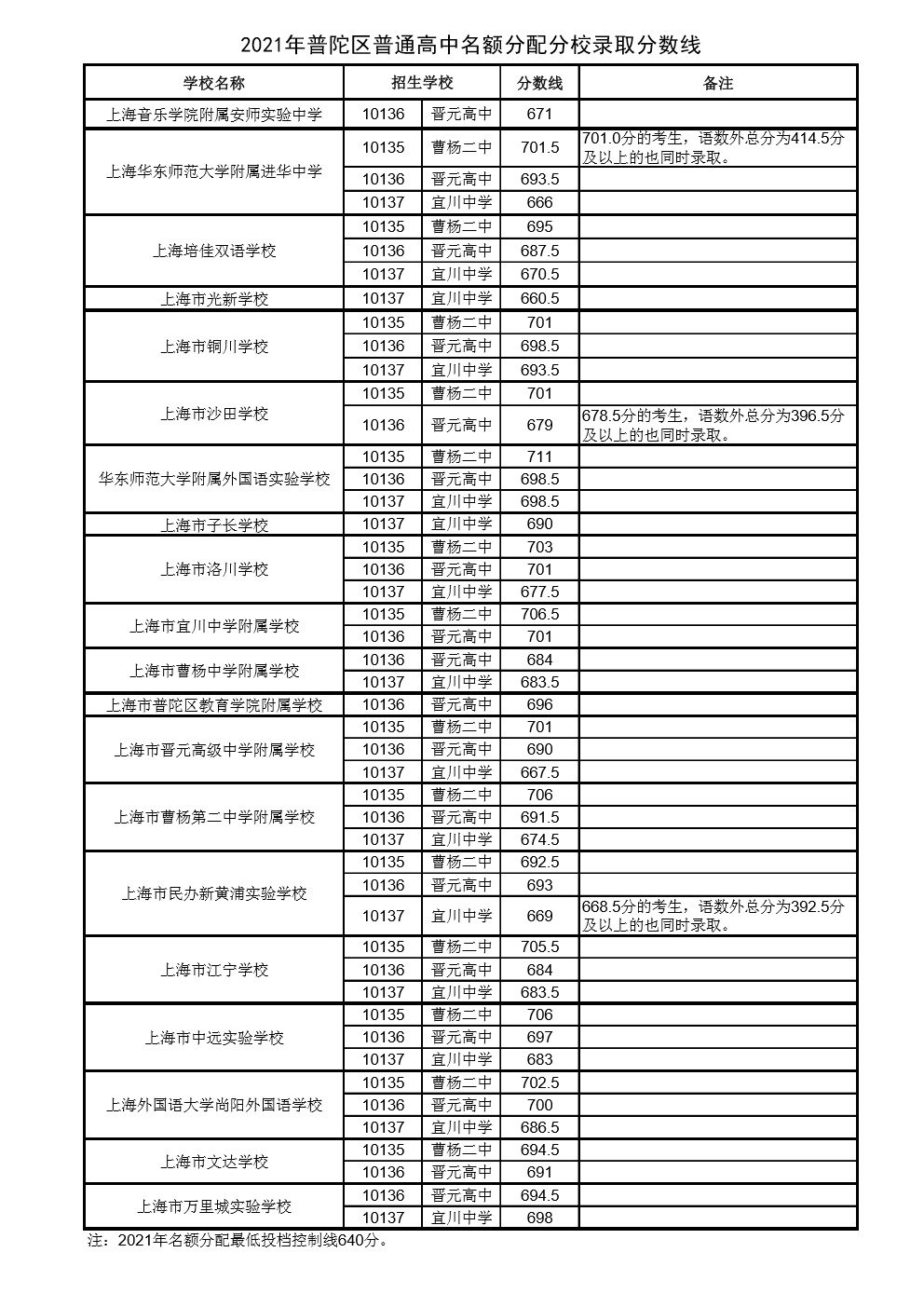 (2021年上大附中名额分配投档分数线)