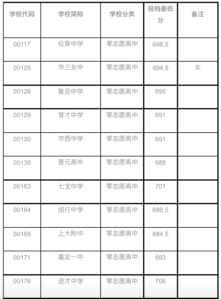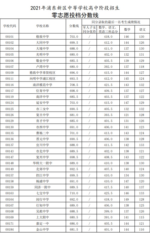 (2021年杨浦区零志愿录取分数线)