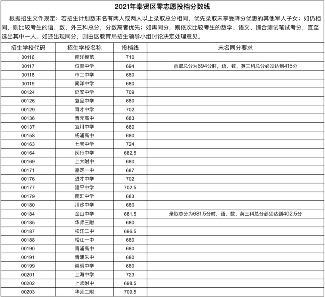 中考考生注意了!今天,上海16个区公布中招零志愿、名额分配志愿录取分数线。