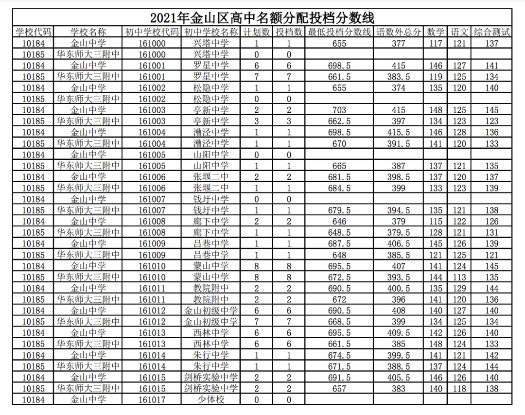 (2021年行知中学名额分配投档分数线)