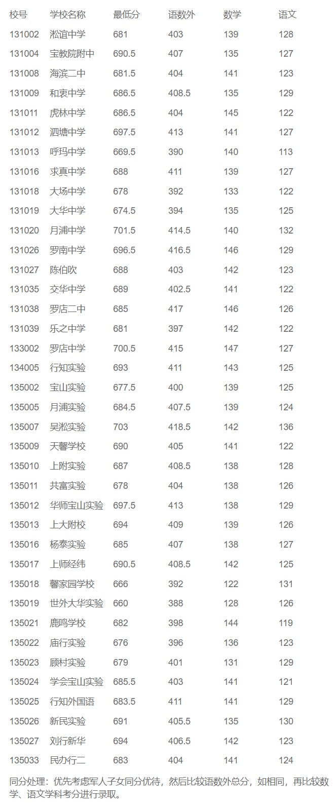 (2021年吴淞中学名额分配投档分数线)