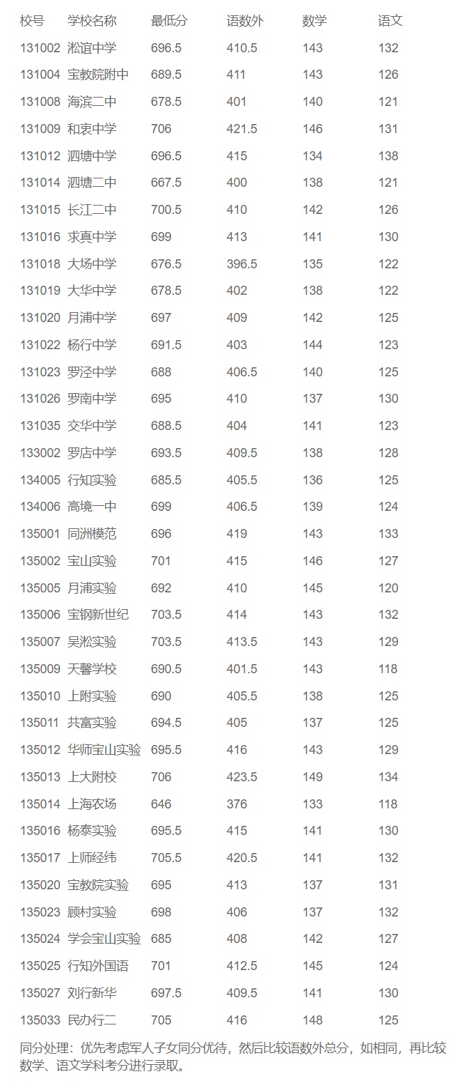 截至发稿时,杨浦区名额分配最低投档分数线暂未在官网公布。