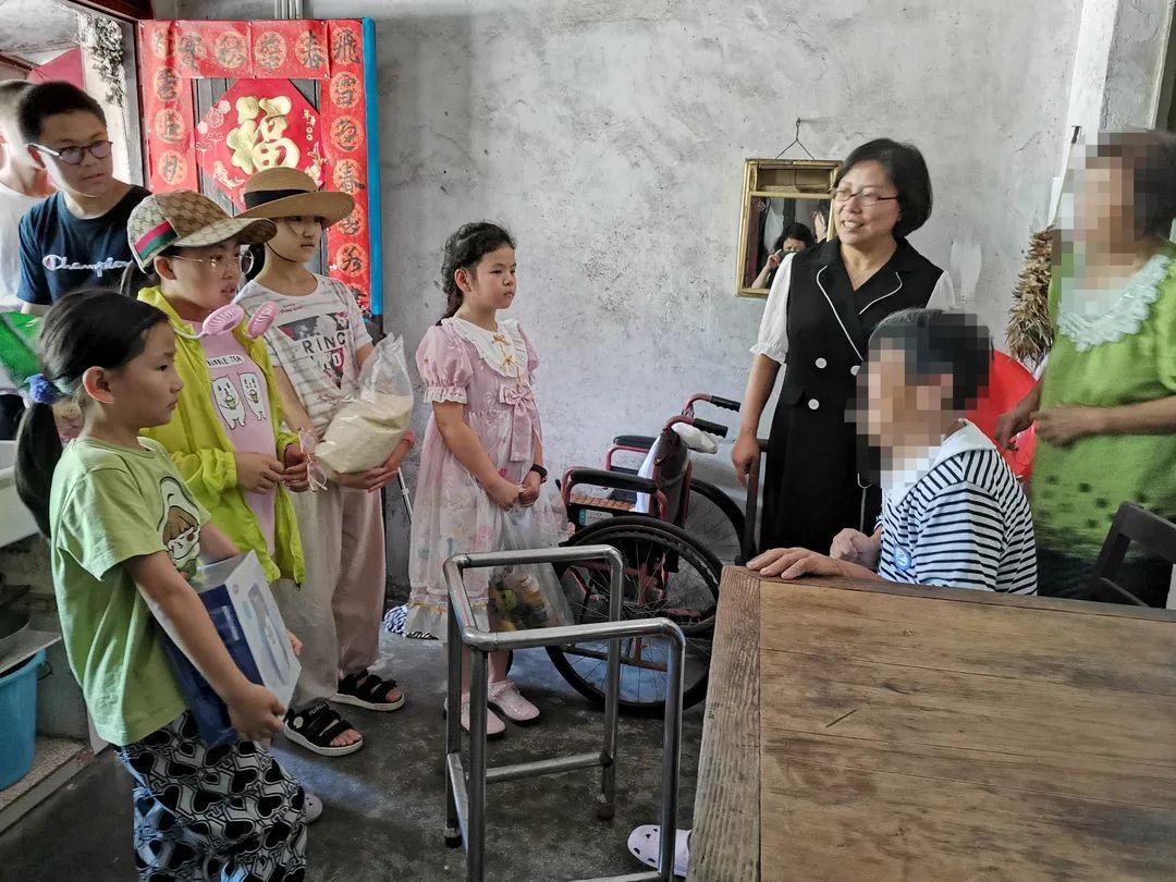 在叶榭镇中原居民区党支部副书记、社区工作站站长卫慧的带领下,8名社区小朋友看望慰问辖区内2户生活困难的家庭,带去快乐和温暖。活动前,小朋友们在家长的带领下,用自己的零花钱购买了大米、牛奶、衣服等爱心礼物。这2户贫困家庭,分别是双胞胎困难家庭、残疾家庭。小朋友们每到一户,都与这些家庭成员热情交谈,了解他们的家庭生活状况,并送上精心准备的礼物。