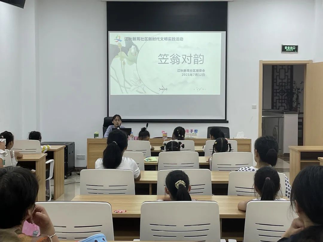 佘山镇江秋新苑社区居委会组织社区未成年人开展了国学诵读系列课程之《笠翁对韵》第一讲。《笠翁对韵》是古人学习写作近体诗、词,它由几字、几词、几句组成对子,声韵协调,琅琅上口。