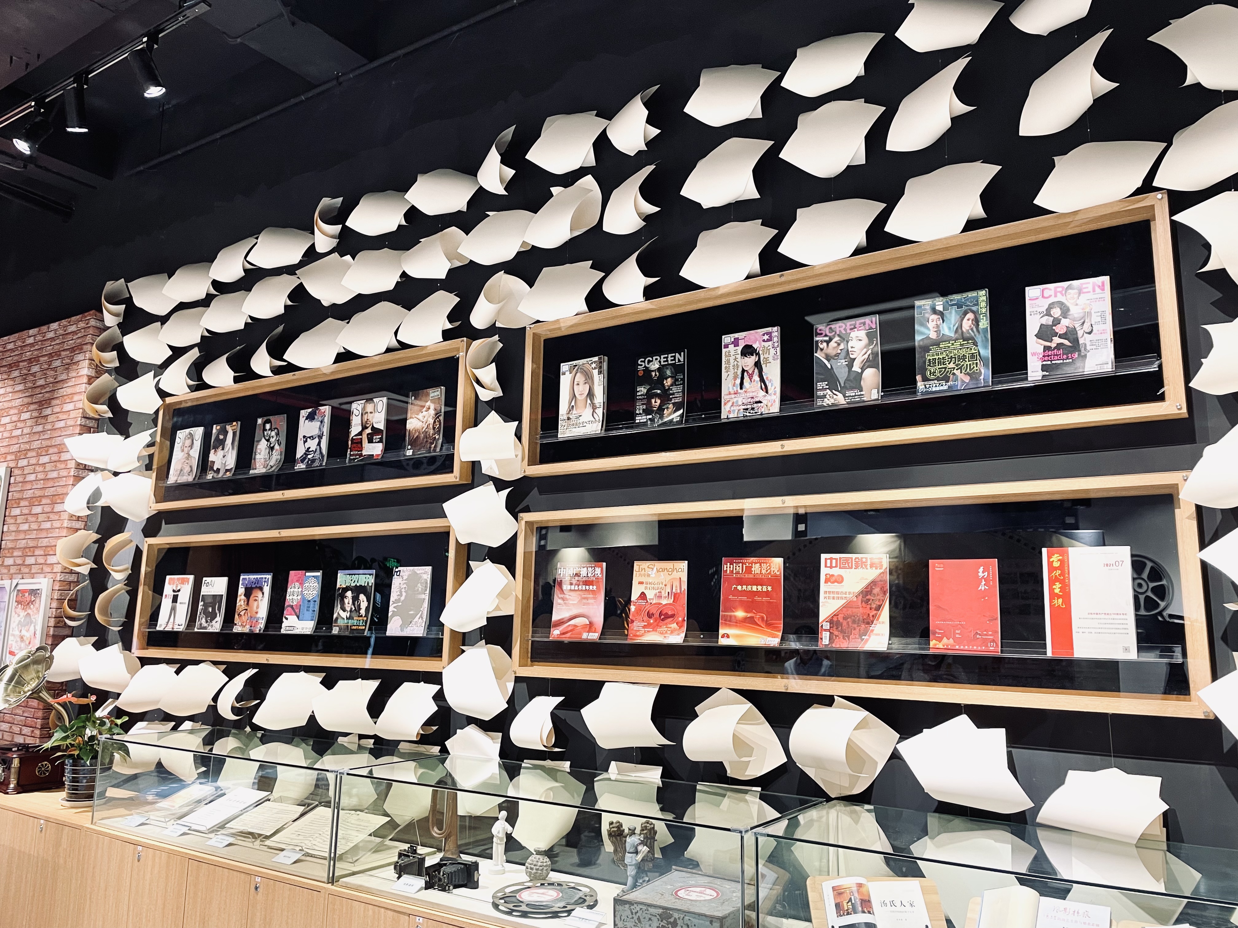 小虹徜徉在展厅的浩瀚藏品中时,突然发现了一处别具特色的展柜。首先映入眼帘的是三本电影连环画,十分精美别致。在它的下方,展出的是各类年代久远的影视类报纸,它们被装订成册,小虹了解到像这样的合订本,馆藏达六百多册。在它的旁边,是一些荣誉与肯定,比如表演艺术家张瑞芳和秦怡女士为题写的“耕耘电影事业、服务社会百姓”,以及馆藏的剧本,粗略估计大概有一千余册。