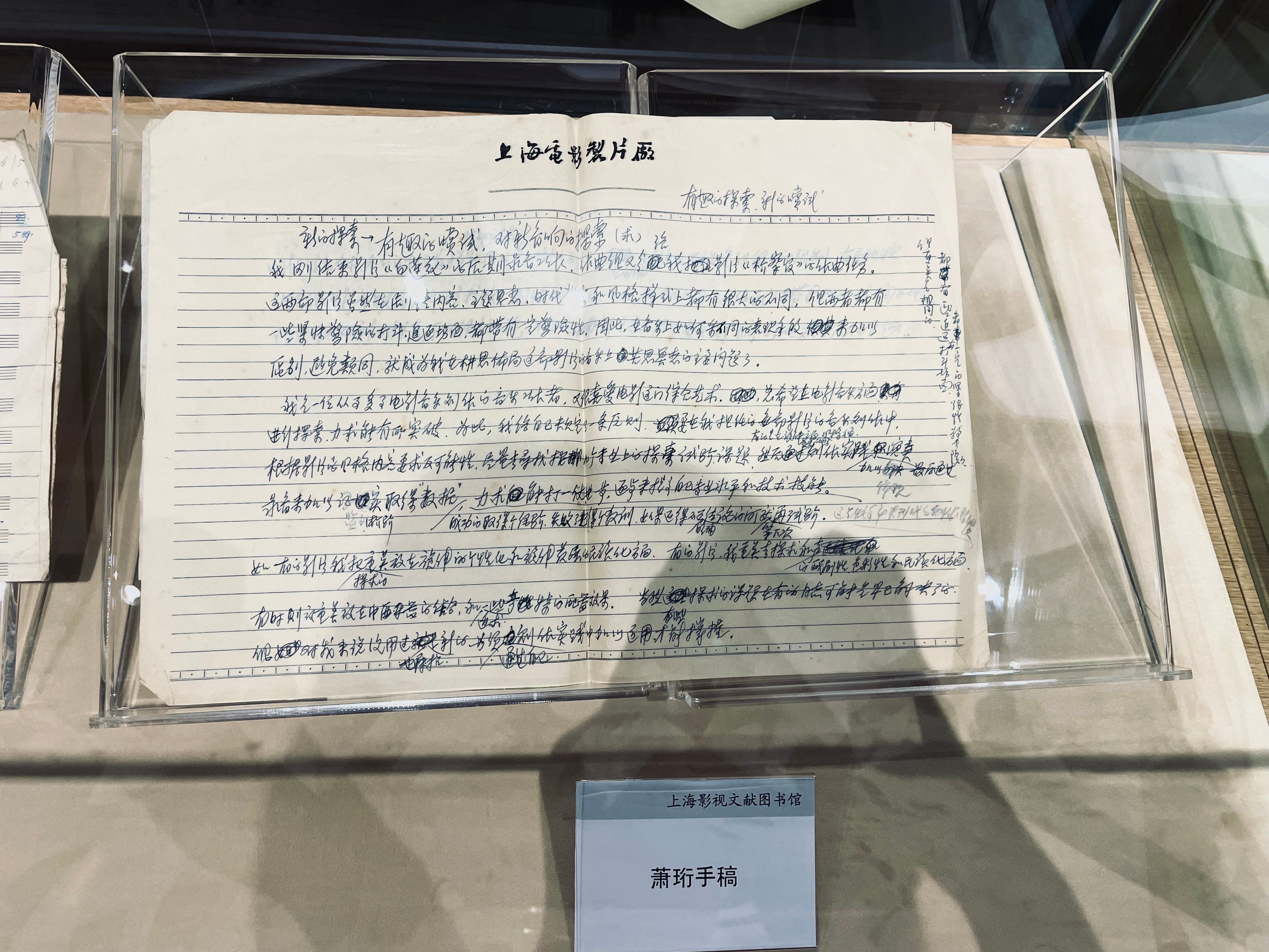 旁边的展柜里,一件特色展品吸引了小虹的注意——上海电影制片厂音乐创作人萧珩先生的珍贵手稿。萧珩这个名字,大家可能会陌生。但是说起他的作品,应该是无人不知无人不晓,大家一定都听过。那就是电影《红日》的插曲——“谁不说俺家乡好”。萧珩先生在上海电影制片厂从事专业电影音乐创作三十多年,先后为近三十部影片作曲。在中间的这份手稿就是他为电影《年青的一代》所做的电影音乐布局表。