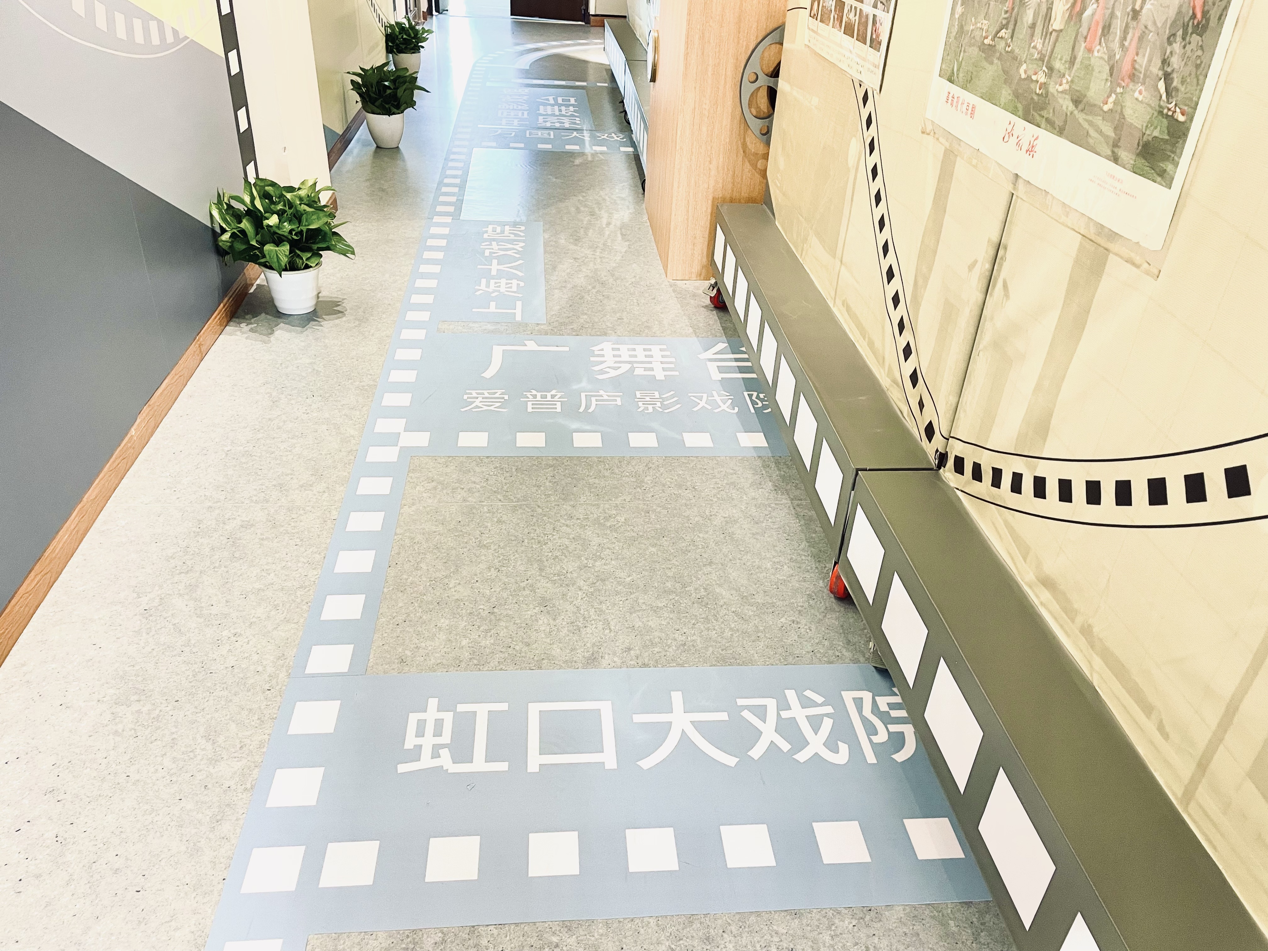 如今,电影已经深深地融入了我们的生活,但电影的故事,电影的回忆也是值得诉说的。细心的小虹还注意到,影视展厅的地面上,独具匠心地贴有着电影院名字的贴纸,小虹记下了它们的名字:东海戏院、百星大戏院、月宫影戏院、奥迪安大戏院、中央大会堂……每走一步,都能看到陪伴虹口走过风风雨雨的影院的足迹。