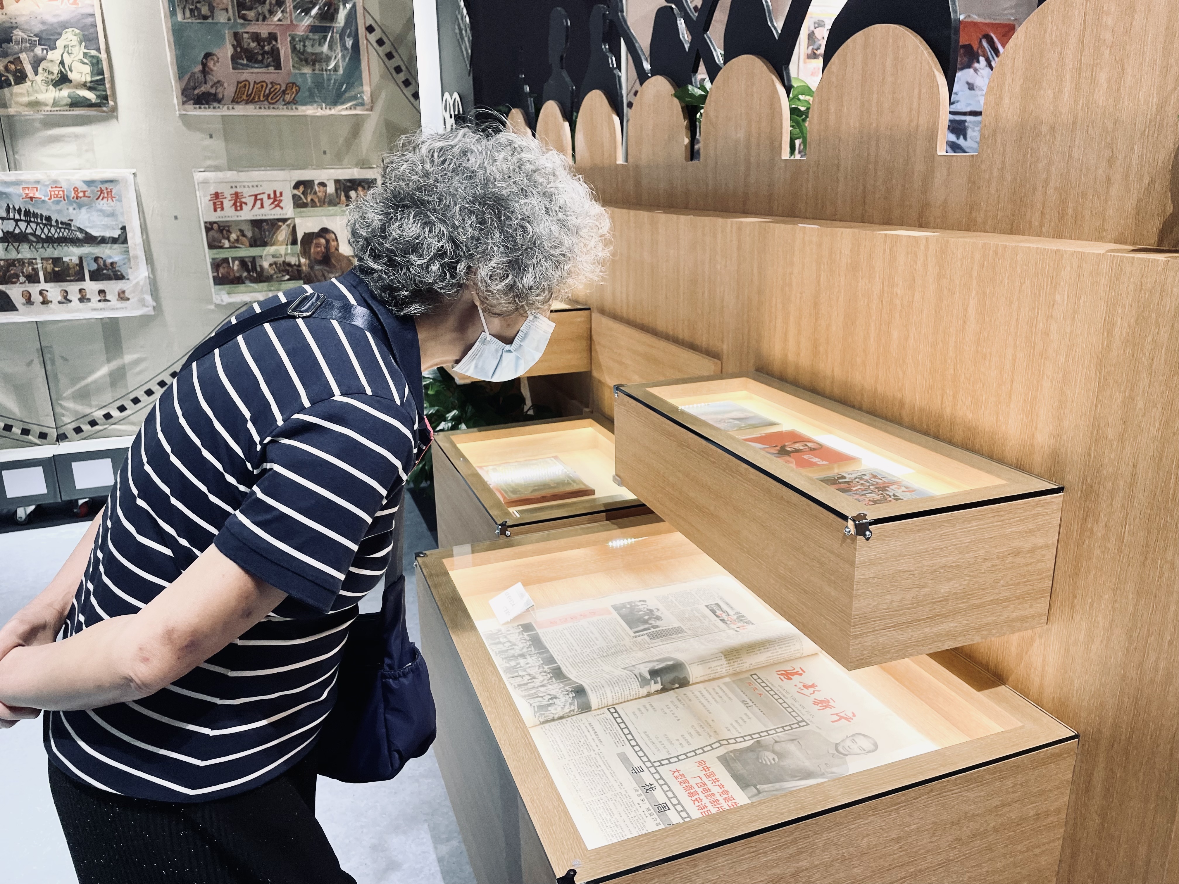 小虹转移视线,红色收藏展览映入眼帘。刘德保先生提供的精品海报令人惊艳,海报以红色题材的中国电影为主,如《烈火中永生》《李双双》等经典作品。除此之外,刘先生还慷慨地展出了建党三十周年时出版的旧报纸,与大家分享那段红色的岁月。