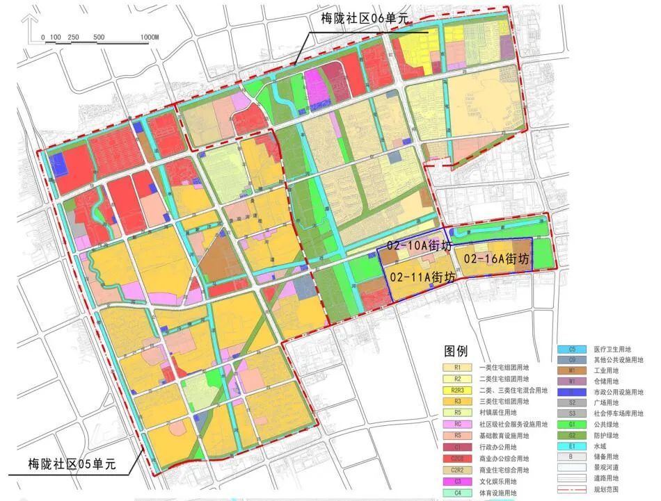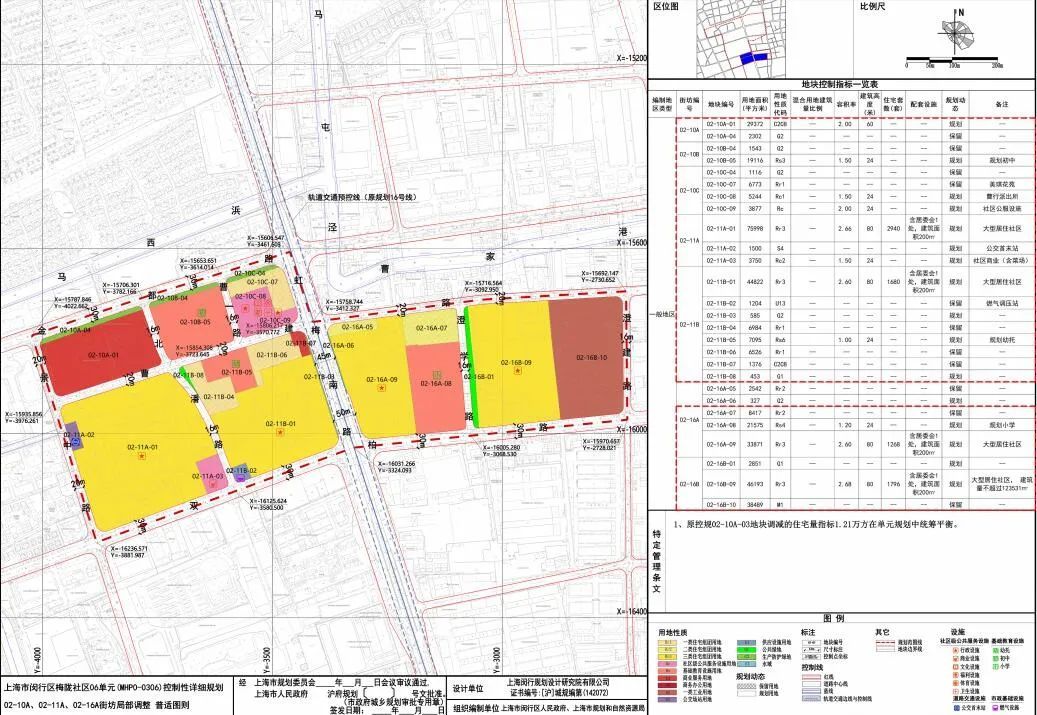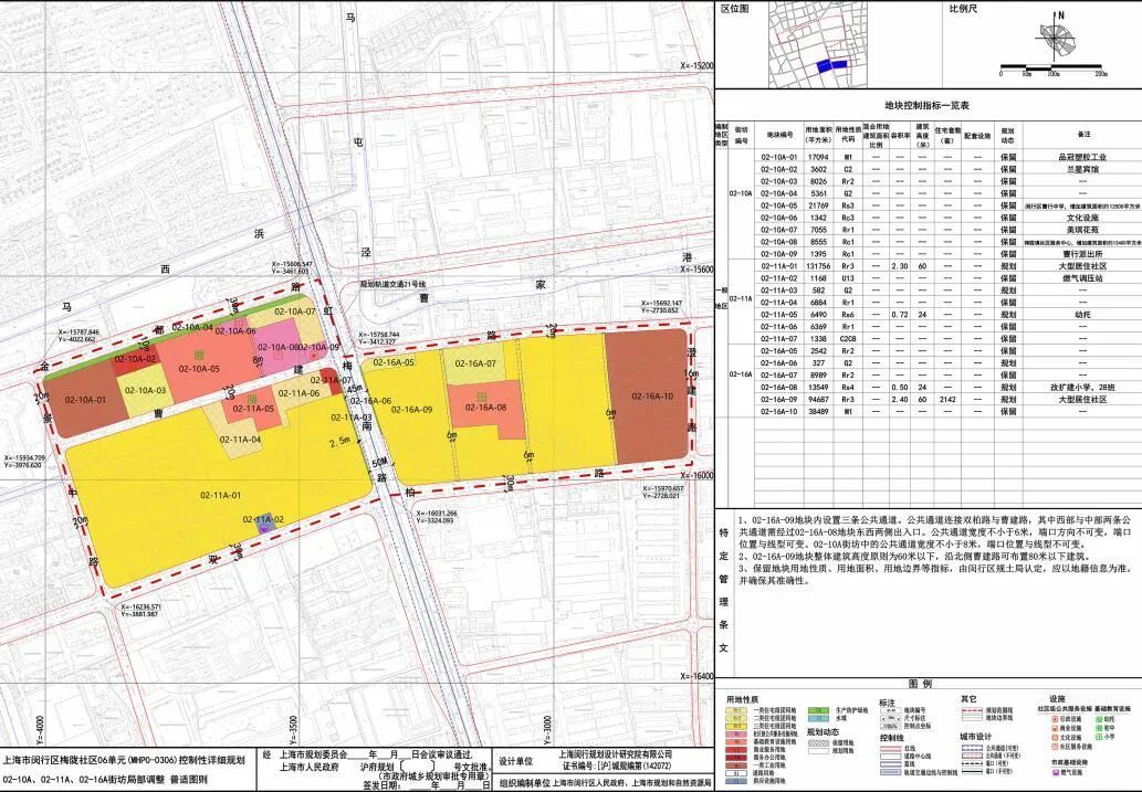 本次涉及调整的02-10a. 02-11a. 02-16a街坊位于梅陇社区06单元(mhp0-0306),四至范围为:东至虹梅南路-澄建路,南至双柏路,西至景中路,北至金都路-曹建路,总用地面积45. 57公顷;