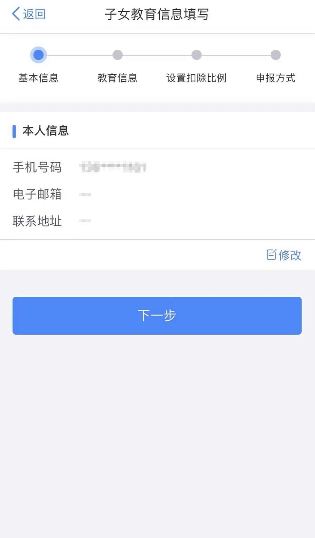 5. 选择本人扣除比例,点击【下一步】