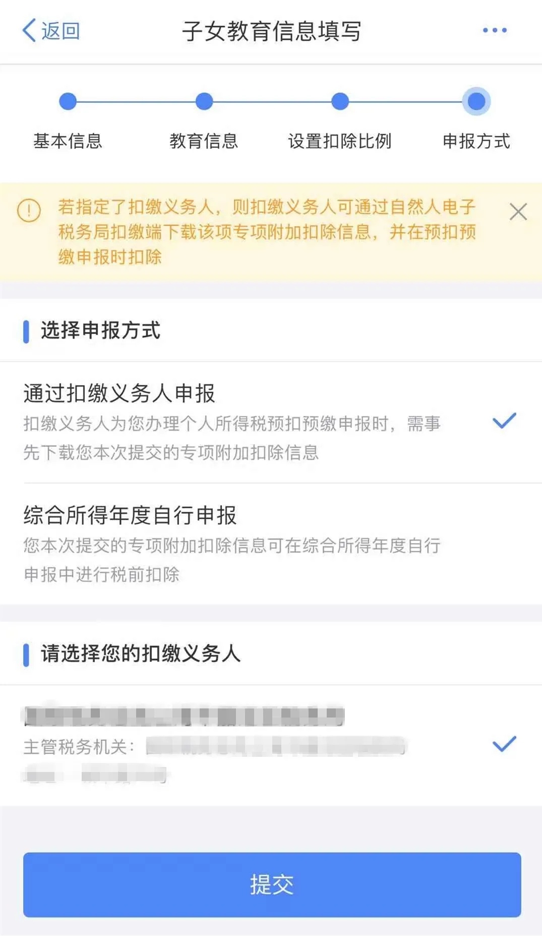 6. 选择申报方式,点击【提交】即可