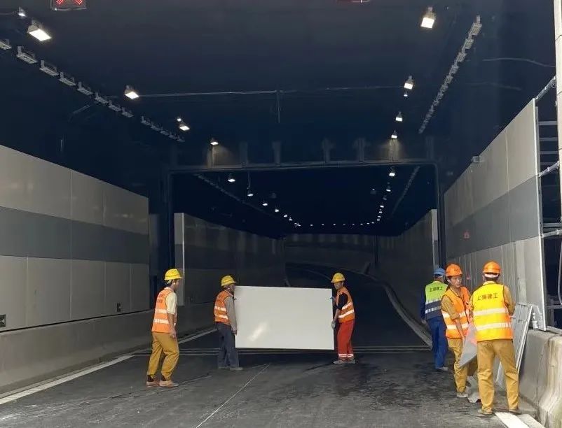 8月27日,记者在现场看到,隧道内部沥青摊铺工作已全面完成,两侧的逃生通道、通行指示灯和消防装置等设施,也已经安装完毕。施工人员正在对隧道两侧墙面的装饰板、照明、风机等设备进行调试。