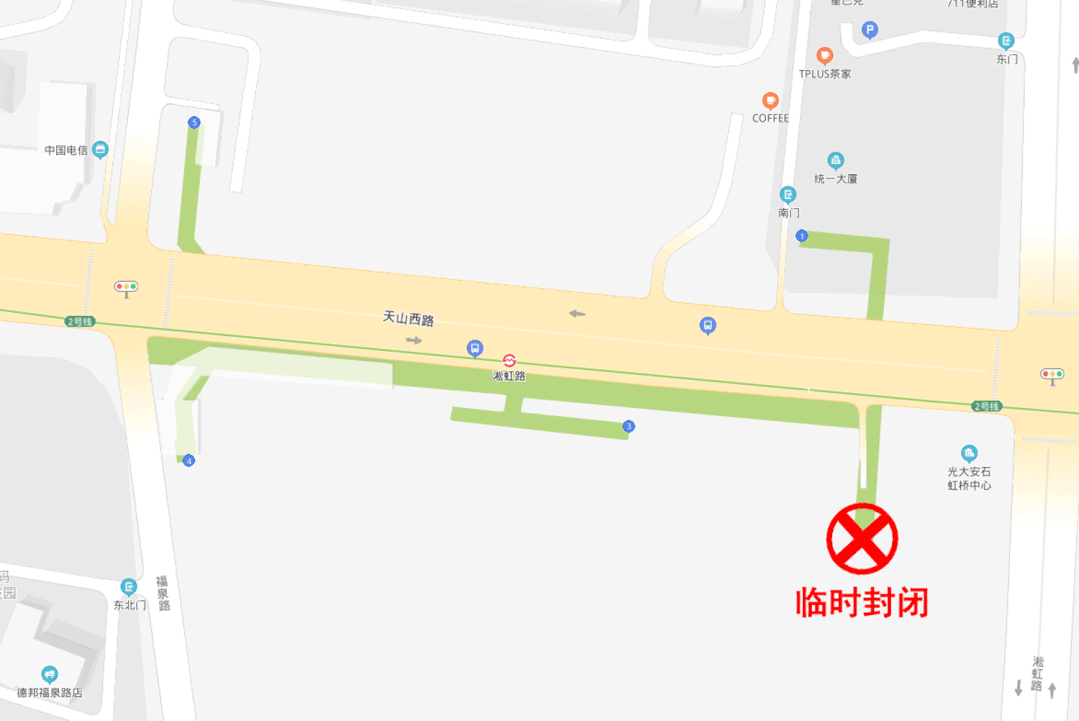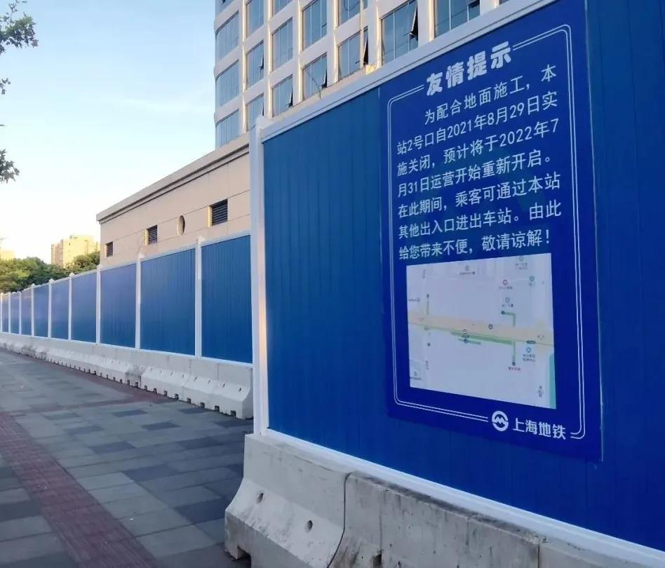 日前,地铁2号线淞虹路站2号口临时封闭,预计2022年7月31日前恢复通行。
