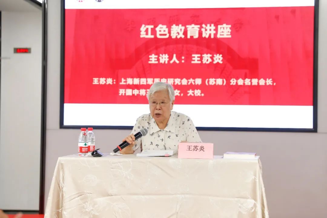 开幕式后,上海新四军历史研究会六师(苏南)分会名誉会长王苏炎大校作党史学习教育讲座,讲述了开国中将王必成的革命故事。