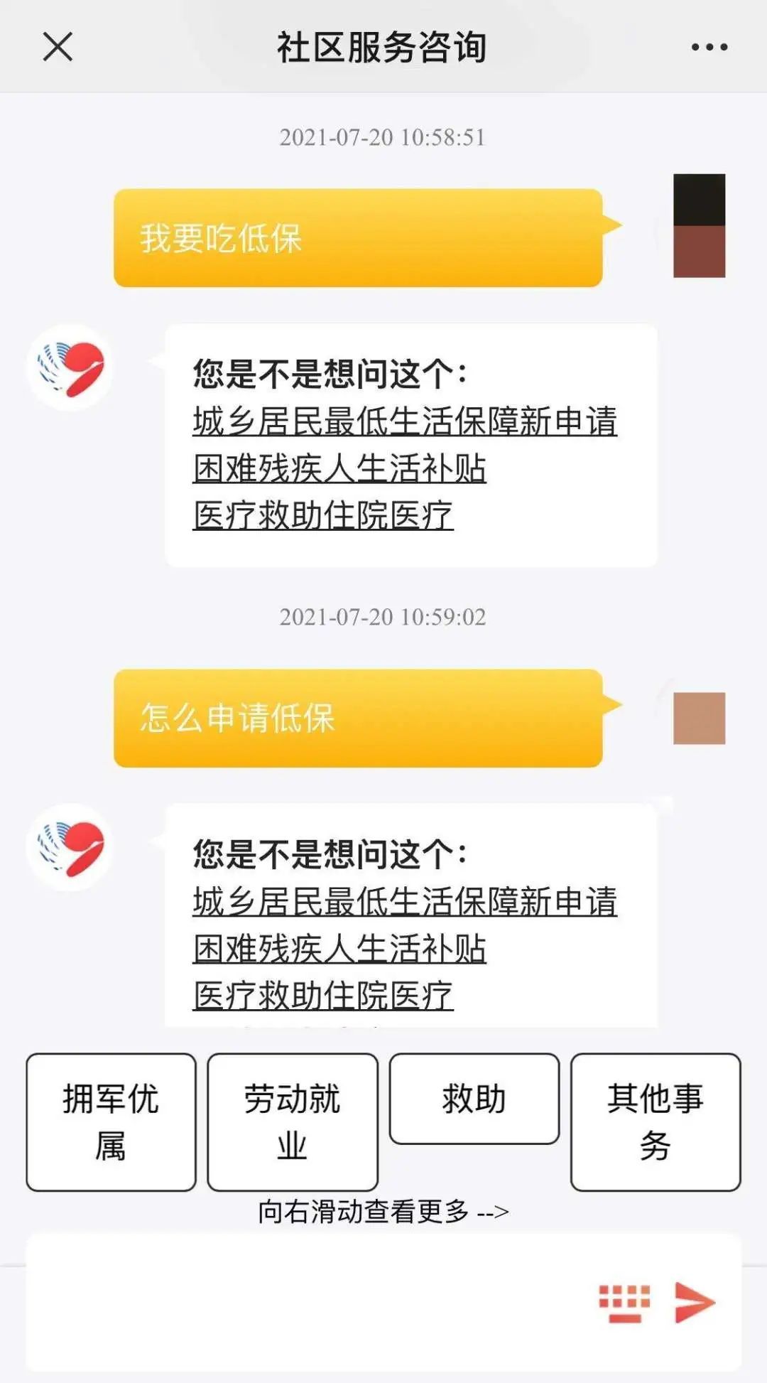设计智能ai在线解答情况及高频问题汇总。平台开发线上救助顾问,与线下顾问实现链接,ai解答不了的问题将自动派发给对应救助顾问开展人工回复。经过积累,平台也会实时自动筛选出高频问答,提高智能ai的回答效率。同时,线下顾问也能充分利用平台资源,通过人员信息、政策和服务的数字匹配,更为智慧、高效、精准地提供救助服务,并挖掘出“沉默”需求。如救助顾问了解到社区中一位高龄老人独自照顾重残卧床的儿子,希望得到帮助却不好意思开口。救助所便通过平台的标签搜索功能,匹配了重残无业人员的各项补贴,并通过街道残联为其入住指定养老机构,享受相应机构费用减免。