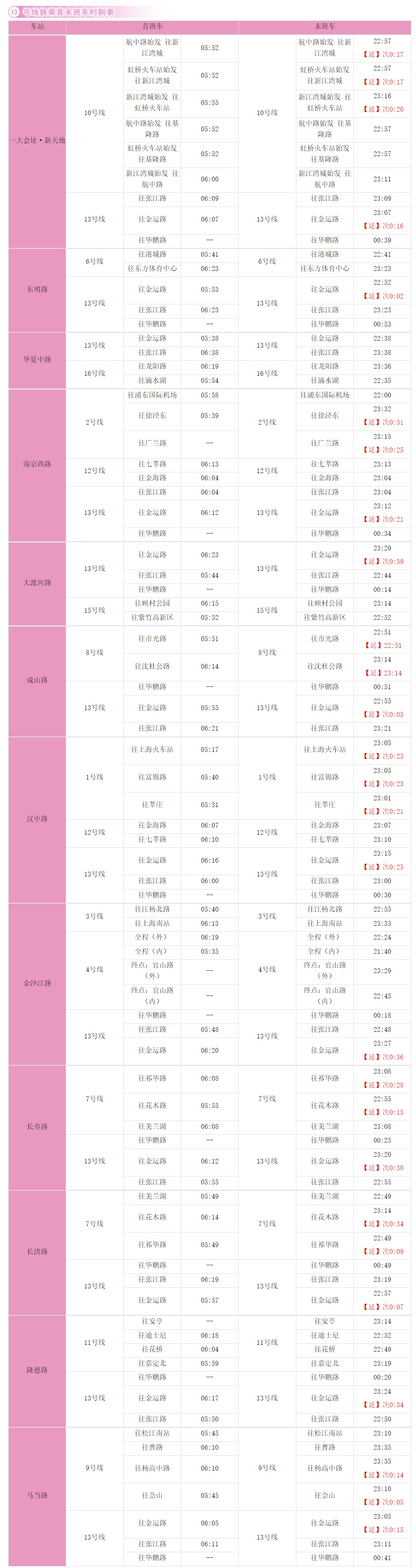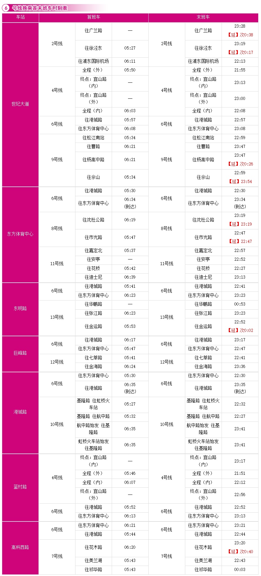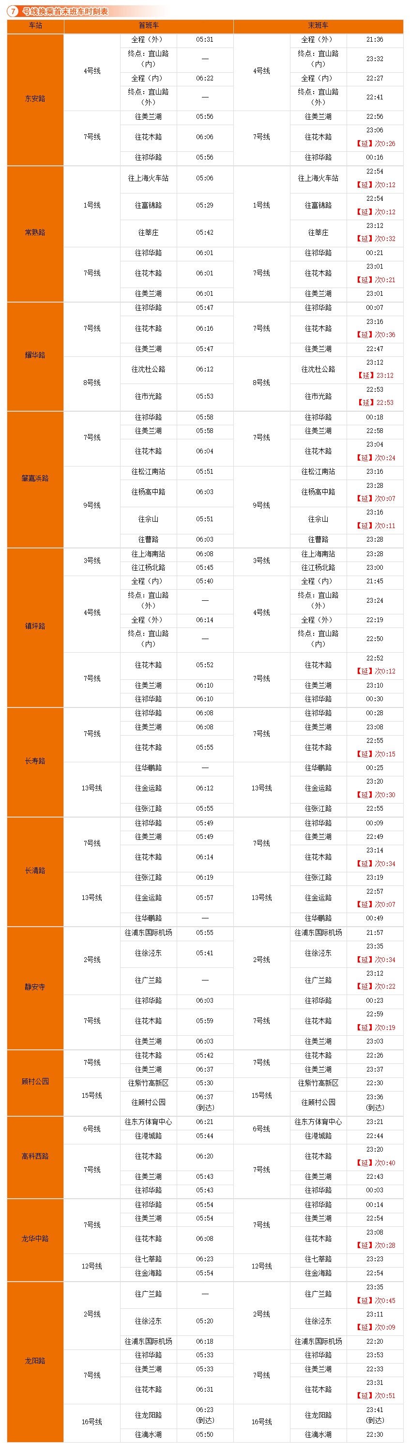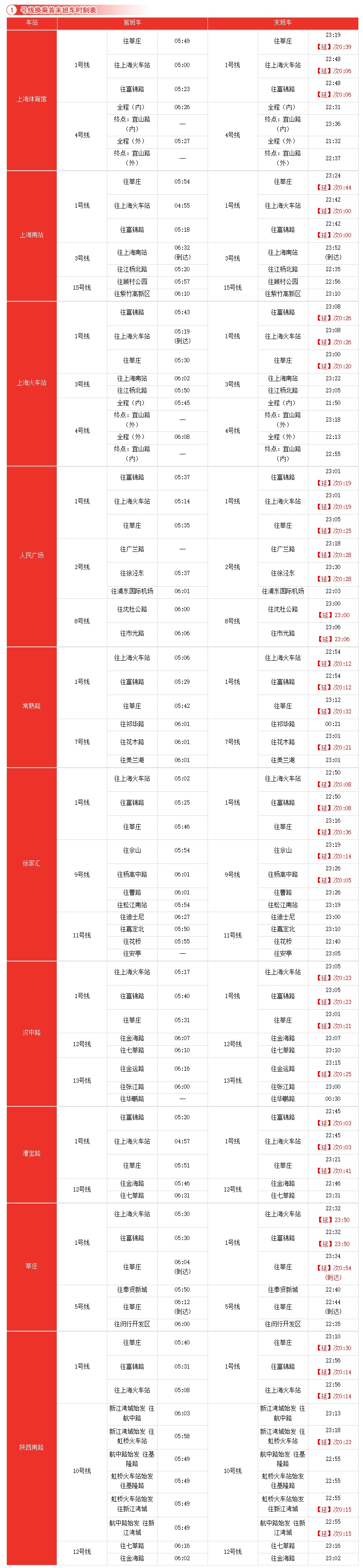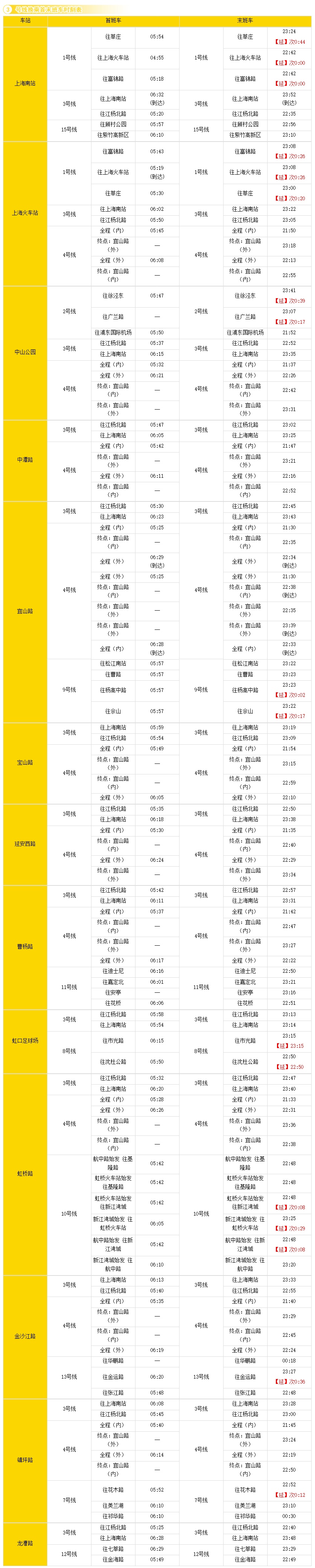早出晚归的朋友们,最新版本的上海地铁各条线路换乘首末班车时刻表来啦,赶紧收藏起来!