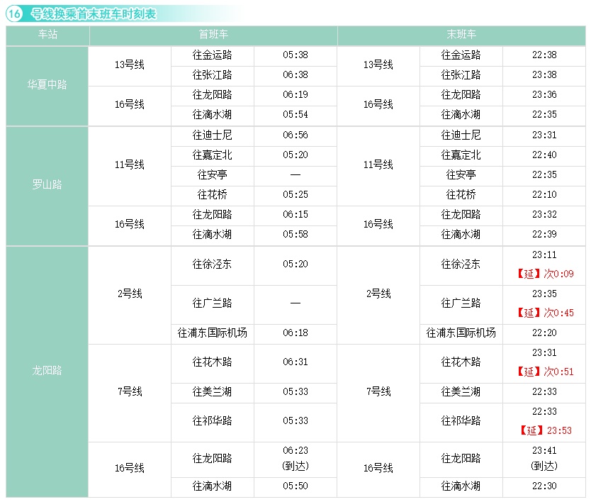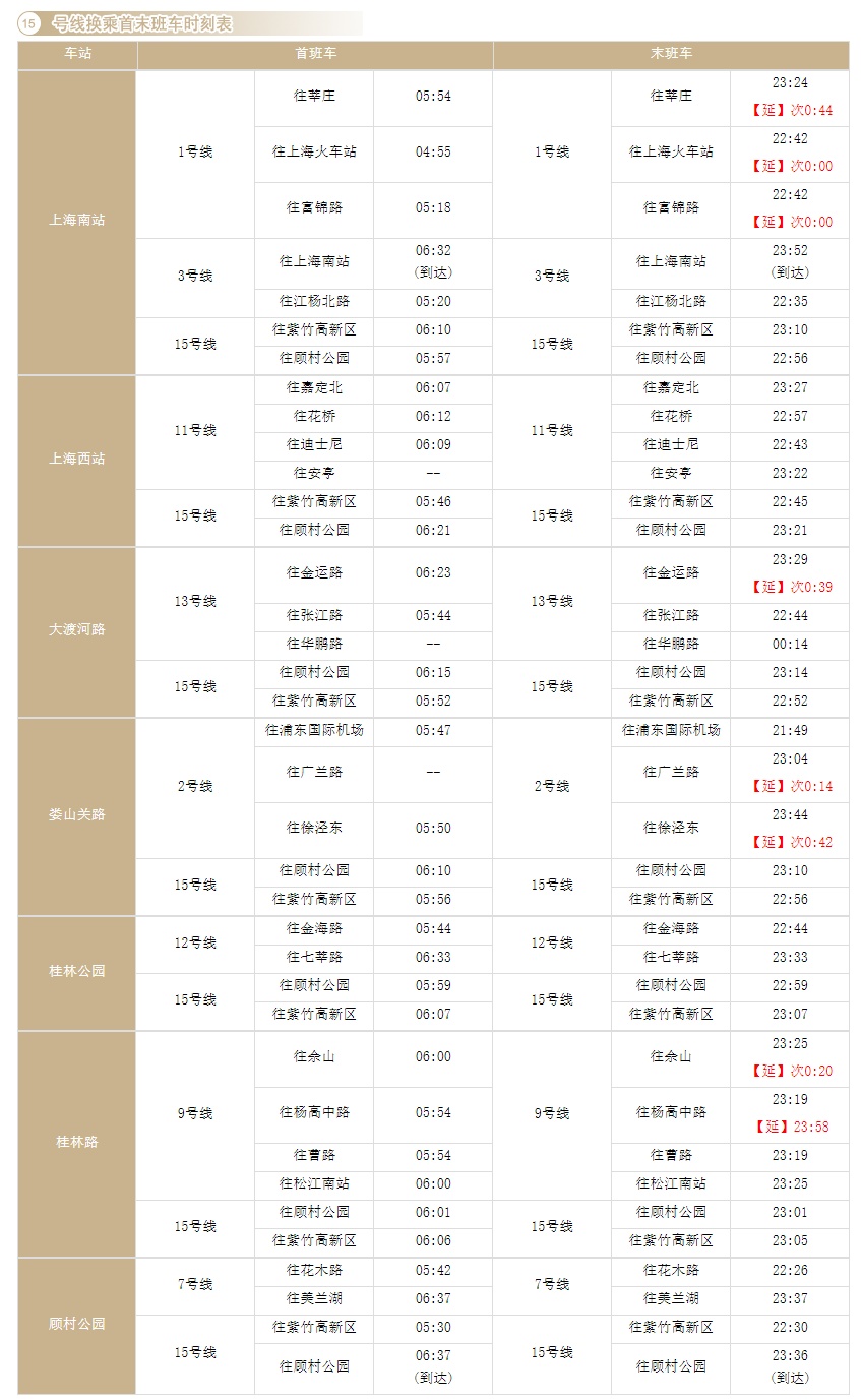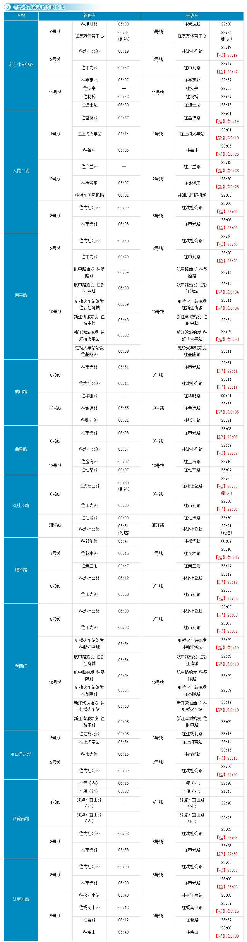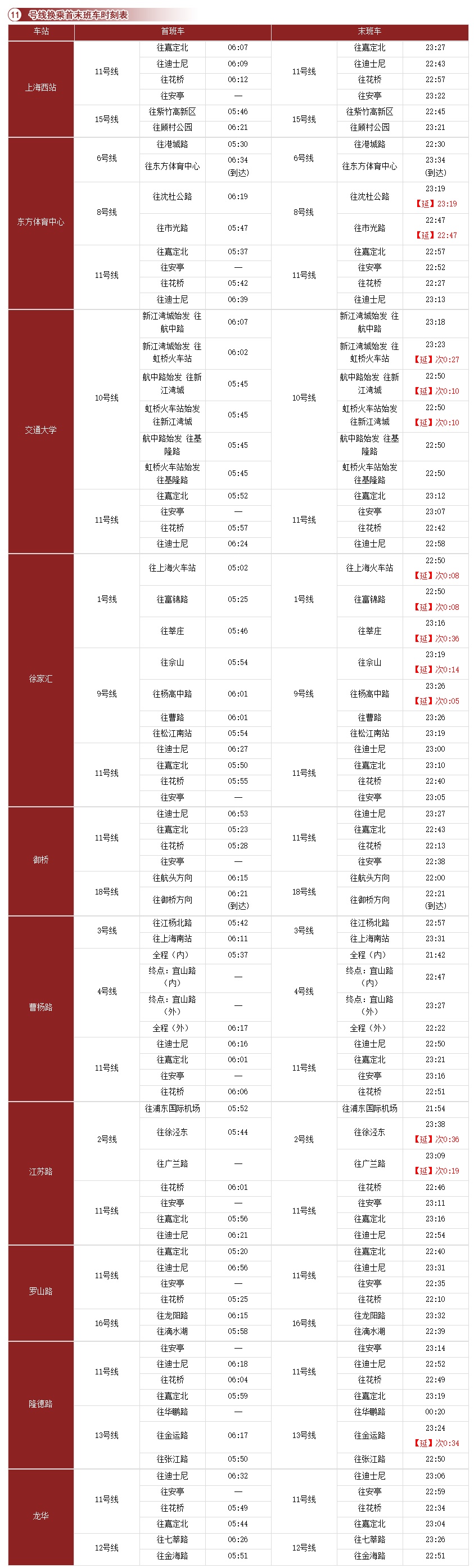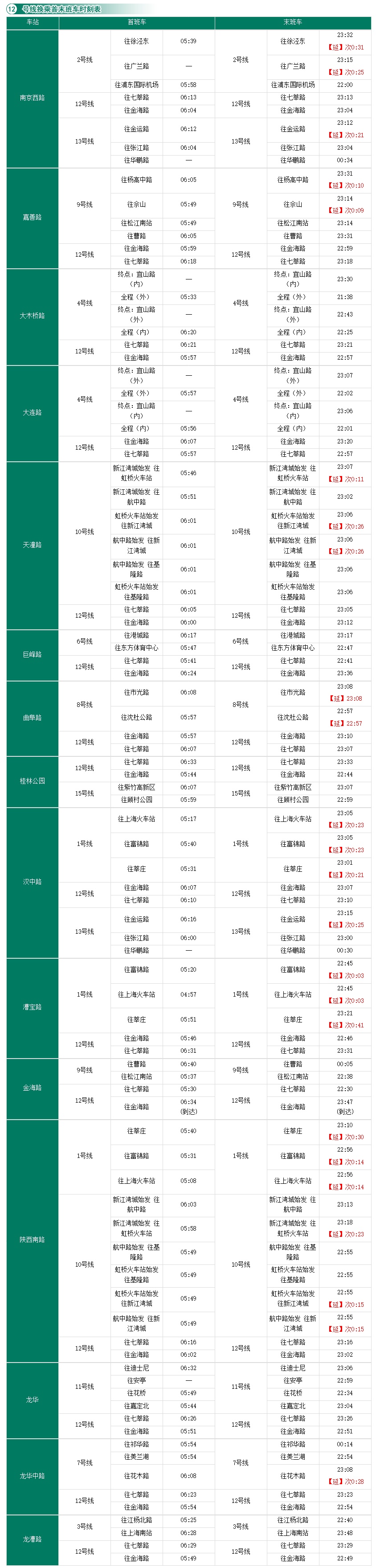 早出晚归的朋友们,最新版本的上海地铁各条线路换乘首末班车时刻表来啦,赶紧收藏起来!