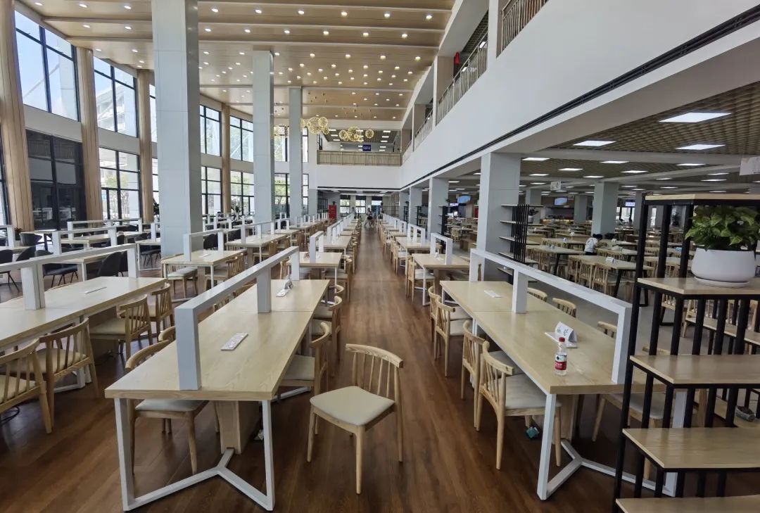 食堂二层除六人桌外,还配备了单人高凳,崭新的桌椅、镂空的天花板和明亮的灯光,均给人带来耳目一新的体验。