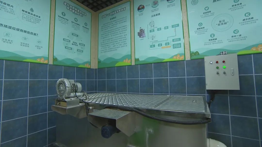 收集来的垃圾会被保洁员统一运送至市场一侧的垃圾库房,能将湿垃圾变废为宝的秘密武器已经在那里准备就位。